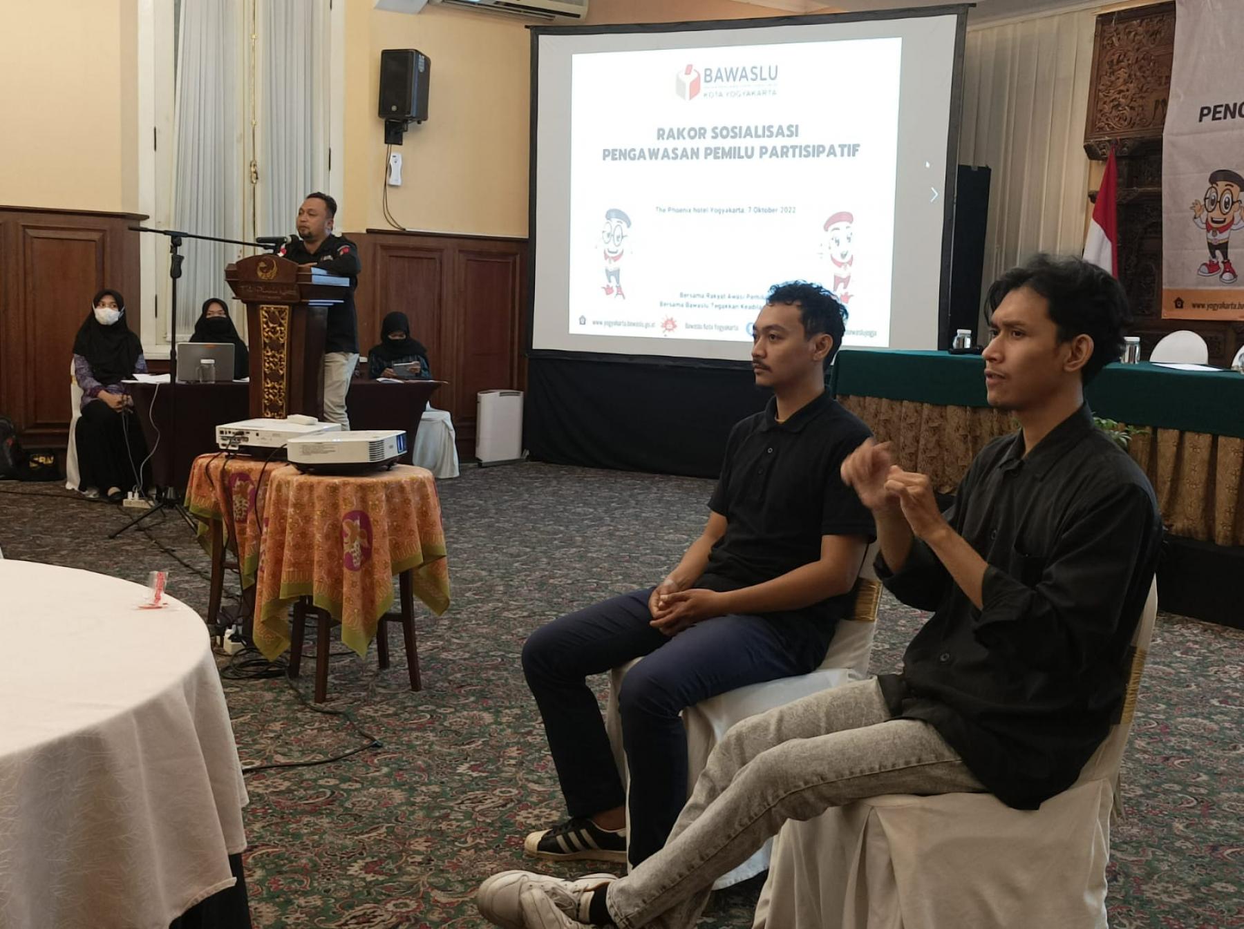 YOGYAKARTA- Bawaslu Kota Yogyakarta telah melakukan rakor sosialisasi pemilu partisipatif bersama para Ketua OSIS SMA dan SMK, SABDA, Pemuda AMPUH, Difabel Demokrasi, dan Tuli Demokrasi. Rakor dengan tema “Bersama Rakyat Awasi Pemilu, Bersama Bawaslu Tegakkan Keadilan Pemilu” digelar pada hari Jumat (7/10/2022) di balroom hotel Phoenix Yogyakarta. Dalam rakor kali ini Bawaslu mengundang M. Amir Nashiruddin sebagai narasumber untuk menyampaikan materi mengenai 2024: Pemilu Bagi Kaum Muda.