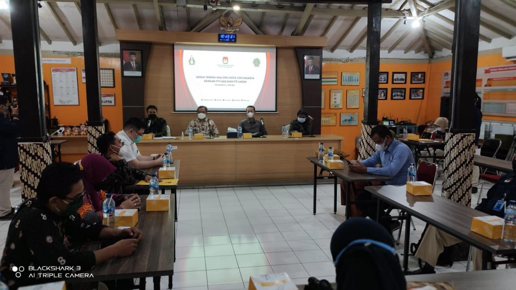 Bawaslu Kota Yogyakarta, diwakili Kordiv Pengawasan, Humas dan Hubungan antar Lembaga, Noor Harsya Aryosamodro, turut menyaksikan Penandatangan Naskah Kerjasama MoU, KPU Kota Yogyakarta dengan Dekan Fakultas Teknik Industri UAD dan Dekan Fakultas Teknik Industri UKDW Yogyakarta di Pendopo KPU Jl.Magelang no 45 Tegalrejo Yogyakarta (Selasa, 8 Juli 2021). Kerjasama tersebut memberikan peluang masing- masing Lembaga sharing knowledge dan ketrampilan tentang isu demokrasi, kepemiluan dan teknologi informasi di Kota Yogyakarta.