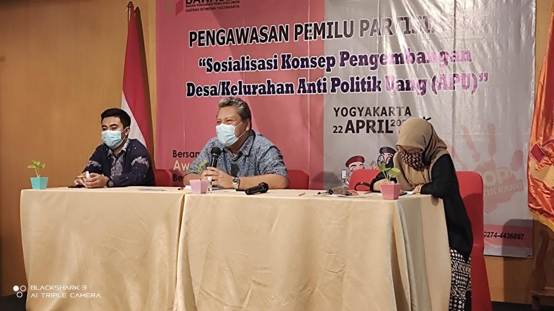 Sementara Kordiv Pengawasan Bawaslu D.I.Y , Muh Amir Nashirudin, memaparkan “Sosialisasi ini merupakan ikhtiar dari Bawaslu DIY melanjutkan Gerakan APU yang lahir 3 tahun lalu, dari Desa Murtigading Sanden Bantul, DIY, menjadi gerakan sinergis masyarakat sipil yang konsolidatif dan sistematis serta terukur, dimana akan diinisiasi di 25 Desa/Kelurahan di seluruh DIYâ€. Upaya ini mendukung pernyataan Bambang Eka Cahya bahwa “ warga Negara atau pemilih yang berdaulat ini merupakan elemen dasar membangun ketahanan demokrasi dalam kehidupan berbangsa dan bernegara di Indonesia yang akan datang. Bahwa usaha Anti Politik Uang ini bukan kita yang akan menikmati namun adalah anak, cucu bahkan cicit kita yang akan merasakan perjuangan iniâ€. (NHA/JS)