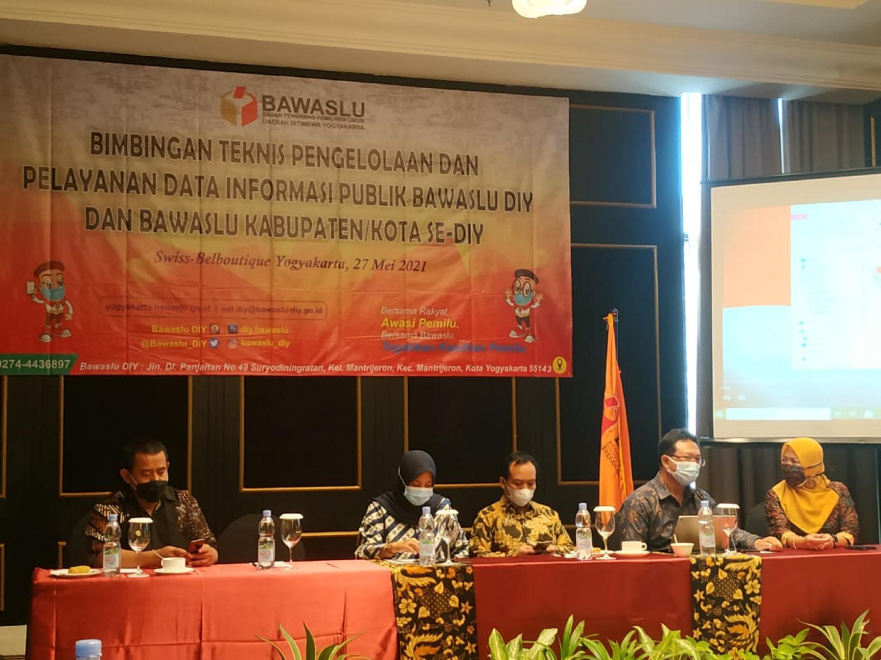 Bawaslu Kota Yogyakarta mengikuti Bimbingan Teknis Pengelolaan dan Pelayanan Data Informasi Publik Bawaslu DIY dan Bawaslu Kabupaten/Kota se- DIY di hotel seputaran Gondokusuman Yogyakarta, Kamis (27/5/2021).