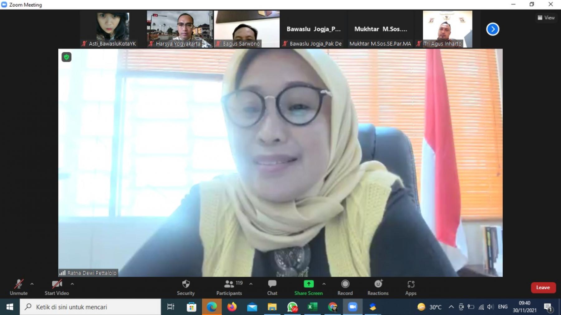 Bawaslu Kota Yogyakarta mengadakan webinar terkait "Politik Uang dan Perilaku Koruptif†acara webinar tersebut diikuti oleh anggota Bawaslu RI selaku pembicara kunci Dr. Ratna Dewi Pitalolo dan juga 2 selaku Panelis yaitu Muhamad Rusdi, S.H.,M.Hum dari Institut Anti Korupsi dan Ketua Bawaslu Kota Yogyakarta Tri Agus Inharto,S.H. Sebagai pengantar webinar Ketua Bawaslu D.I.Yogyakarta Bagus Sarwono.S.Pd.,MPA, Kamis (9/12/2021)