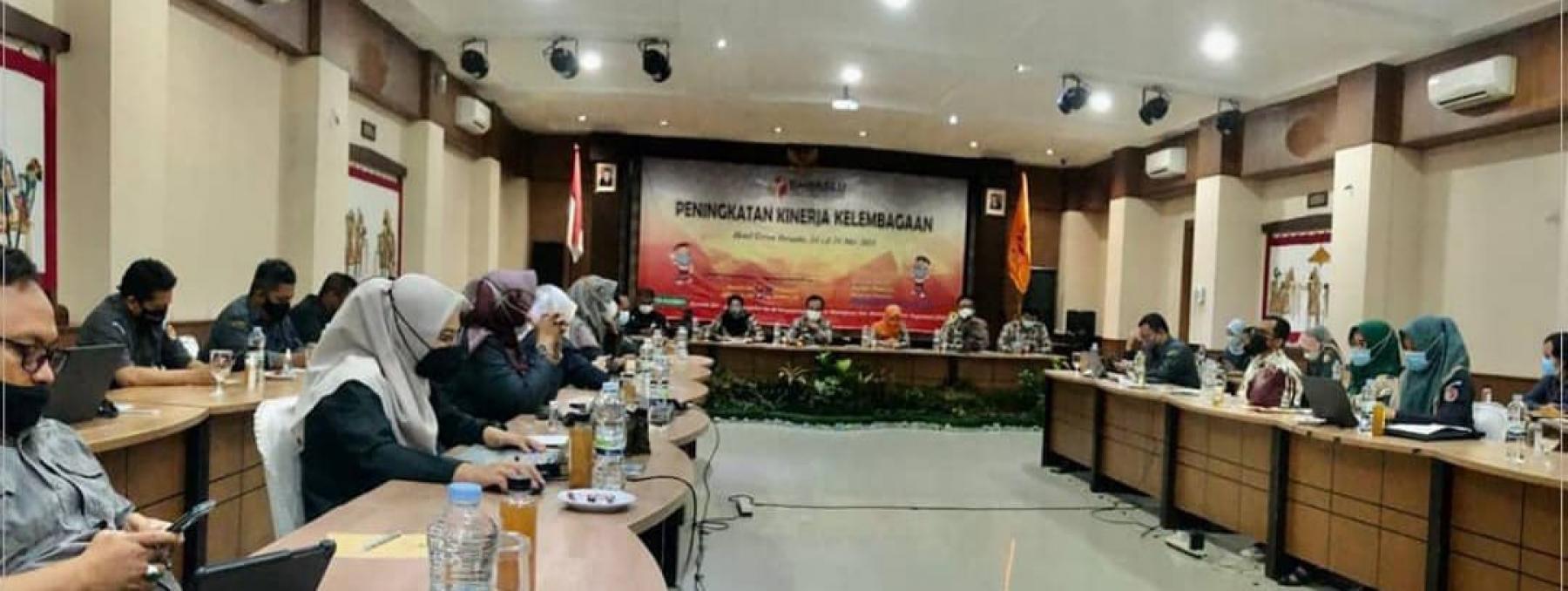Acara Peningkatan Kinerja Kelembagaan yang berlangsung di Hotel Griya Persada Kawasan Wisata Kaliurang membahas tentang penyusunan rencana strategis (renstra) dan rencana kerja (renja) Bawaslu Kabupaten/Kota se-DIY yang didampingi langsung oleh Biro Perencanaan dan Organisasi Bawaslu RI.