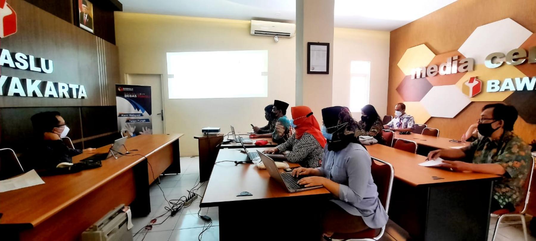 Anggota Bawaslu Kota Yogyakarta Muhammad Muslimin Koordinator Divisi SDM dan Organisasi beserta Staf menghadiri acara rapat koordinasi terkait Presentasi Program Kerja Tahun 2021 yang diadakan di Kantor Bawaslu DIY.