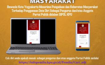 Bawaslu Kota Yogyakarta menerima pengaduan dan keberatan masyarakat terhadap penggunaan data diri sebagai pengurus dan/atau Anggota Partai Politik di dalam SIPOL KPU